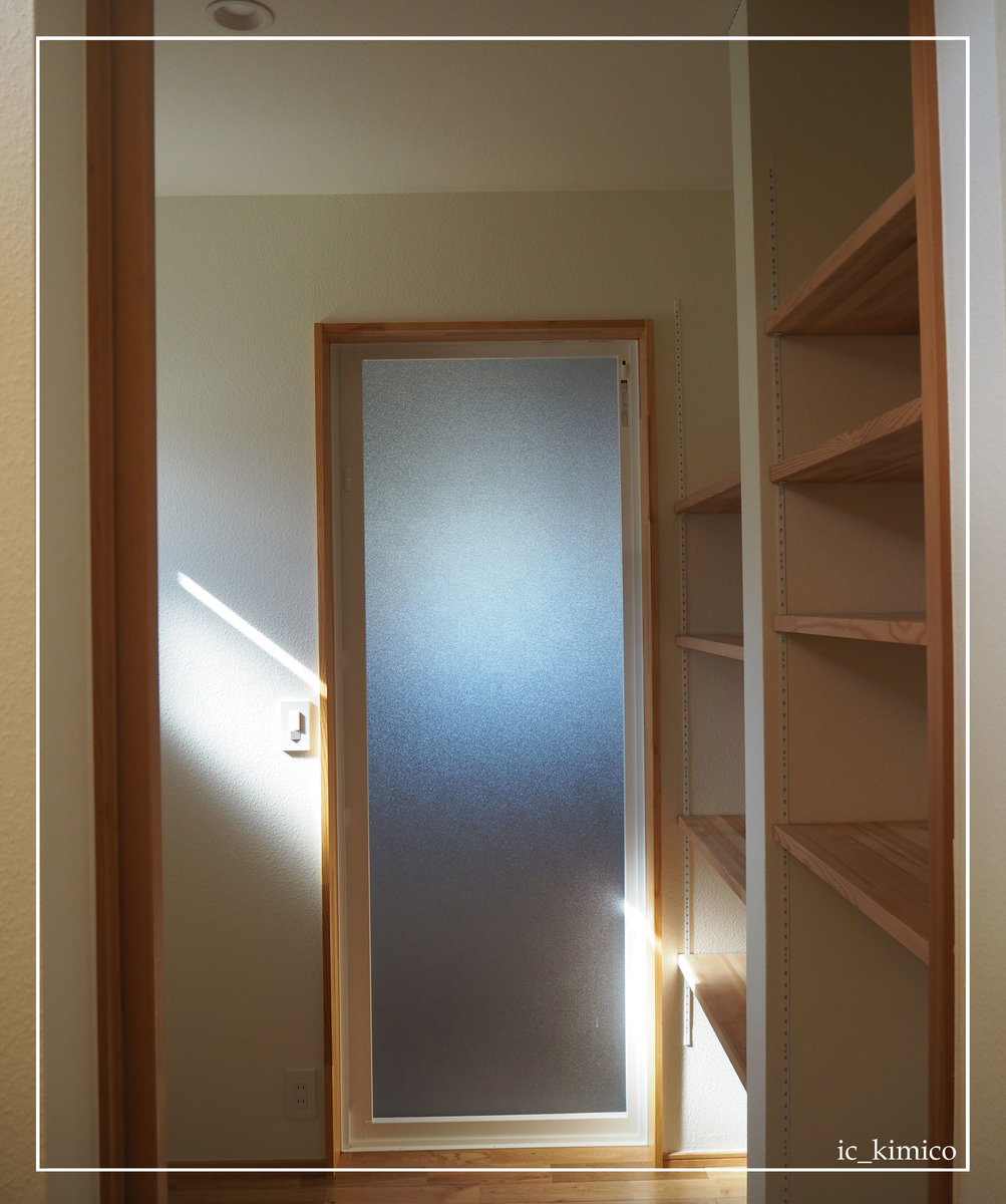 個人的に型ガラスが好きではないので極力採用していないのですが、だからといって脱衣室の窓をクリアガラスにして、ブラインドやロールスクリーンを設置するのも湿気が多い場所だし手入れが面倒だなぁ・・・と悩んだ末。