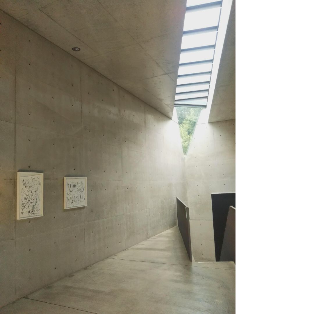 一般的な美術館は、窓はなくすか極力小さくして照明の光で作品を照らしますが、この美術館はそういう常識の逆をいっていて、大きく切り取られた窓から入る自然光で魅せるのが特徴です。